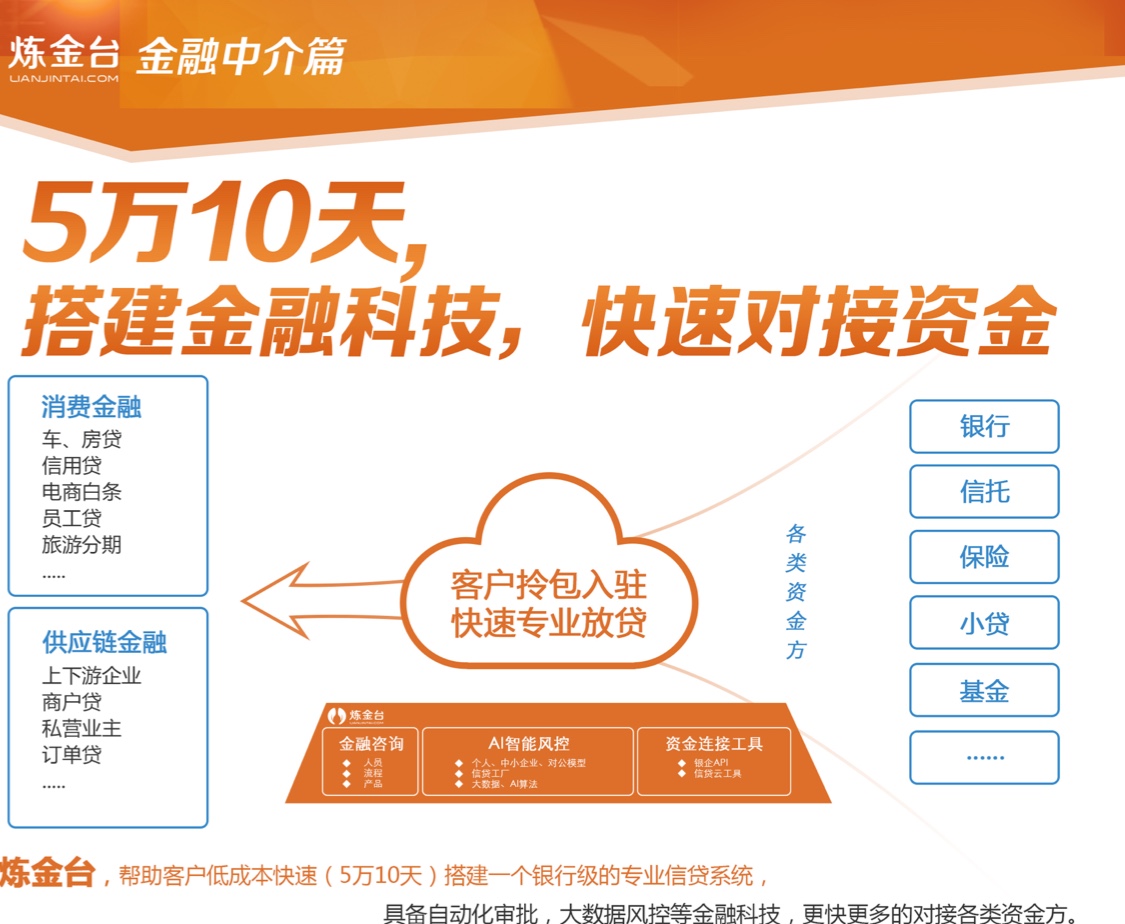 【炼金台】提供多家银行资金对接服务,寻体量大助贷公司和供应链金融需求者